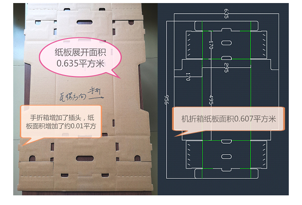 機器粘合的紙箱和手工折疊的紙箱比較